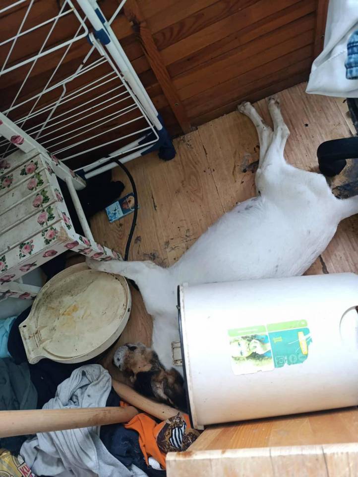 Jeden z czworonogów, szczeniak, żyje, choć jego stan został określony jako bardzo zły – pies jest nie tylko przeraźliwie wystraszony, ale przede wszystkim skrajnie zagłodzony. Dorosła suczka nie przeżyła tego koszmaru, w momencie interwencji służb była martwa.