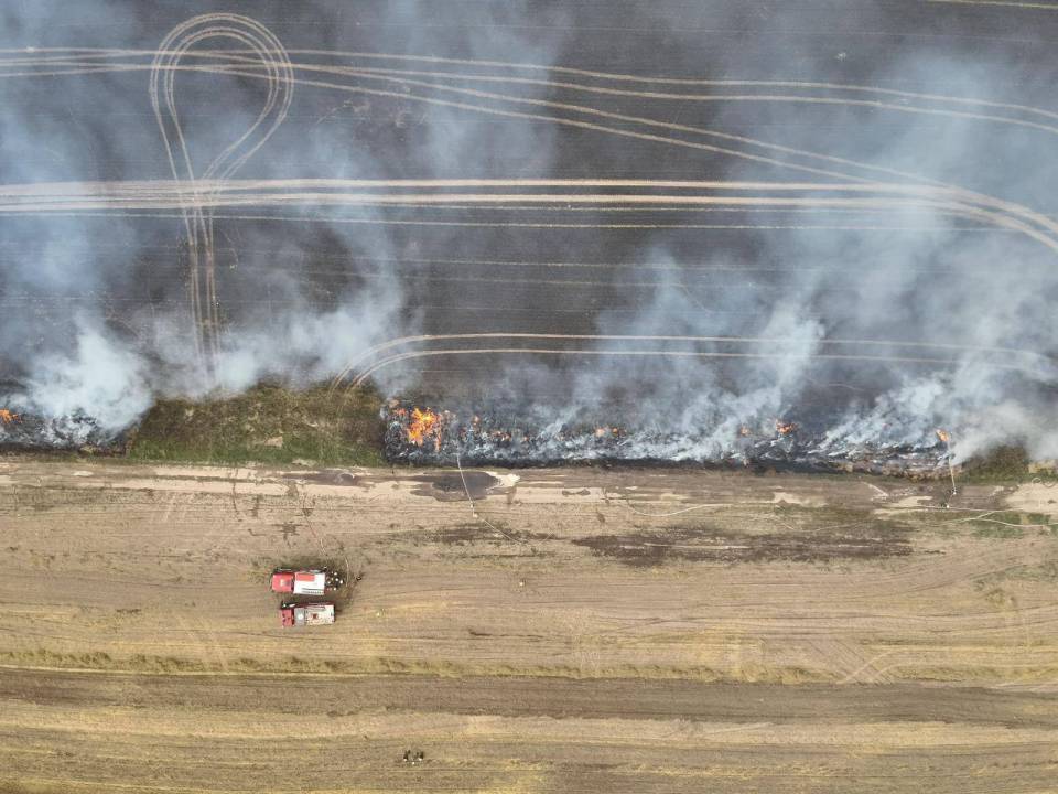 Obecnie sytuacja jest opanowana, a służby prowadzą kontrolowane wypalanie pozostałości balotów. Trwa również dokładne dogaszanie pogorzeliska, by zapobiec ponownemu rozprzestrzenieniu się ognia.