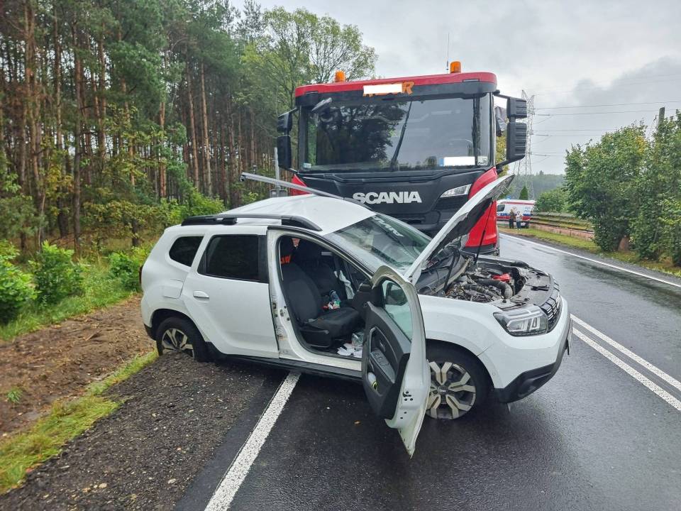 Groźny wypadek w Józefowie. Po zderzeniu osobówki z ciężarówką dwie osoby trafiły do szpitala
