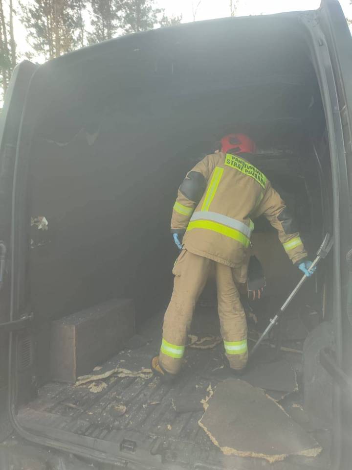 Zgłoszenie o pożarze Renault Master wpłynęło do służb ratunkowych o godzinie 8.14. Na miejsce łącznie zadysponowano trzy zastępy w sile dwunastu strażaków. Do akcji ruszyły wozy z Jednostki Ratowniczo-Gaśniczej w Łasku oraz Ochotniczej Straży Pożarnej w Marzeninie.