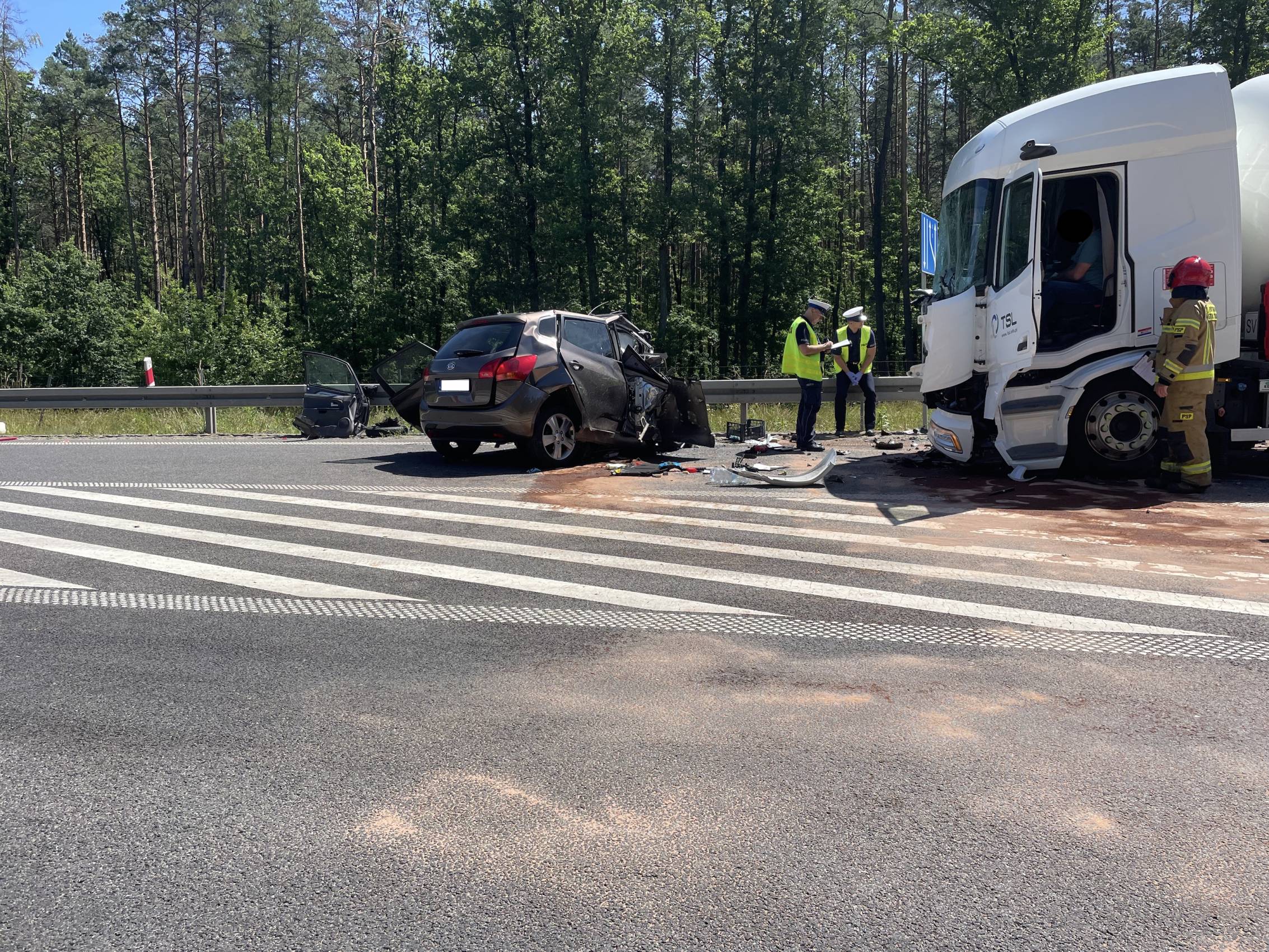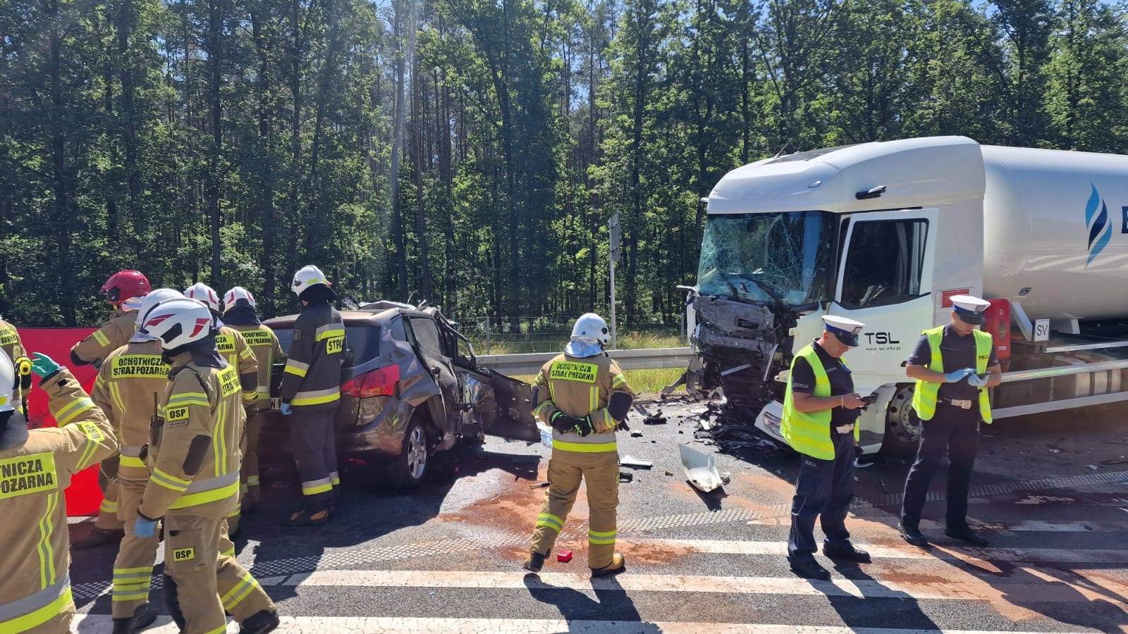 Do zdarzenia doszło w poniedziałek, 30 czerwca tuż przed godziną 10.00 rano. Wstępnie wszystko wskazuje na to, że kierujący samochodem osobowym Kia, zjechał na przeciwległy pas ruchu, wówczas doszło do czołowego zderzenia z ciągnikiem siodłowym przewożącym ładunek gazu.