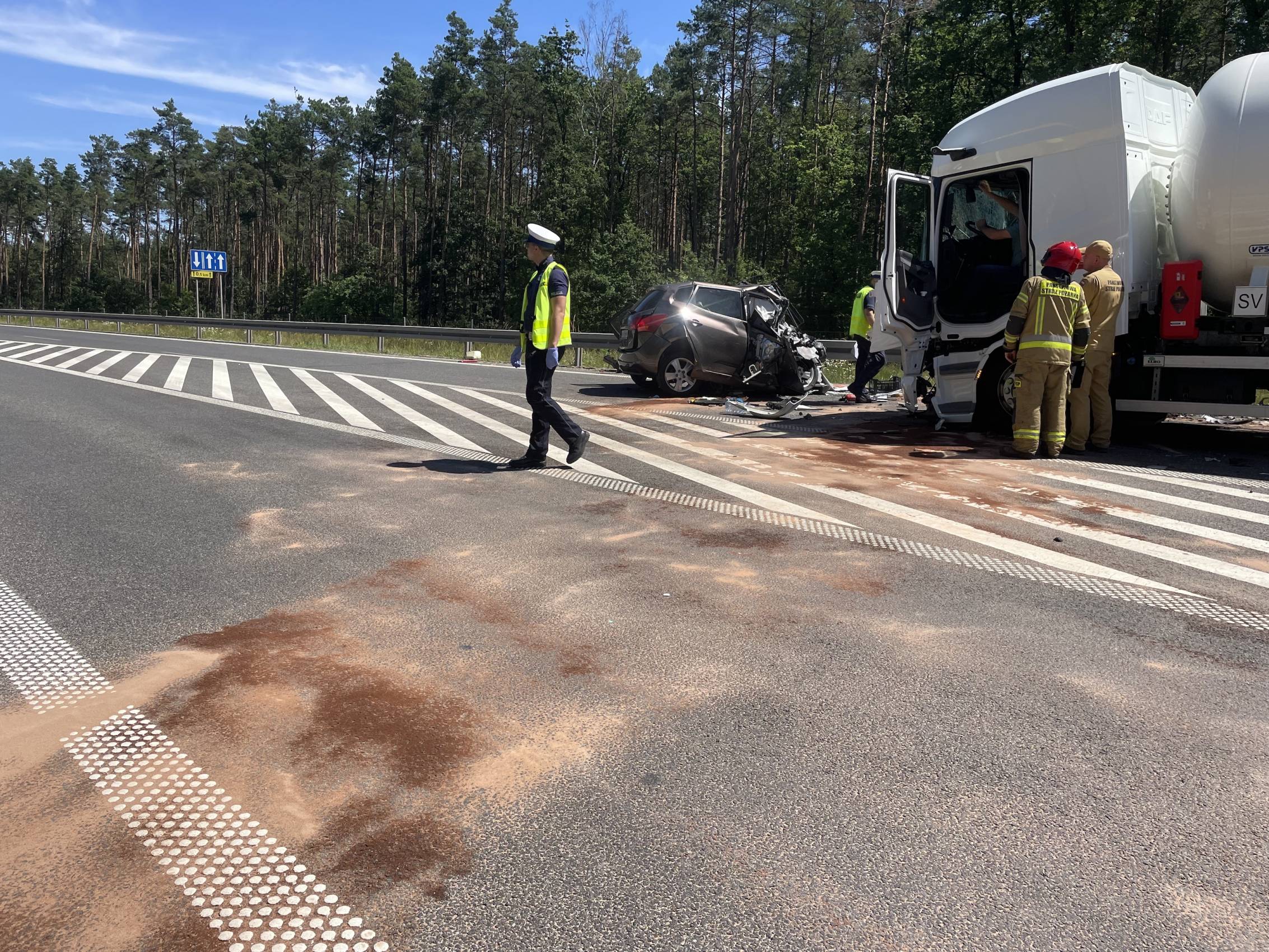 Droga jest nieprzejezdna i tak może być przez najbliższe godziny. Niezbędnym do udrożnienia trasy jest bowiem przepompowanie ładunku gazu do innego pojazdu i usunięcie pojazdów z jezdni. W tej chwili służby czekają na podstawienie kolejnej cysterny.