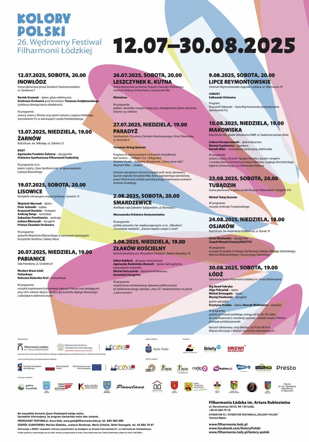 Przed nami 26. edycja Wędrownego Festiwalu Muzycznego Filharmonii Łódzkiej „Kolory Polski". Piękna muzyka, mistrzowskie wykonania i 13 pięknych zakątków naszego województwa. Do tego wycieczki i bezpłatne dojazdy organizowane przez Łódzką Kolej Aglomeracyjną.
